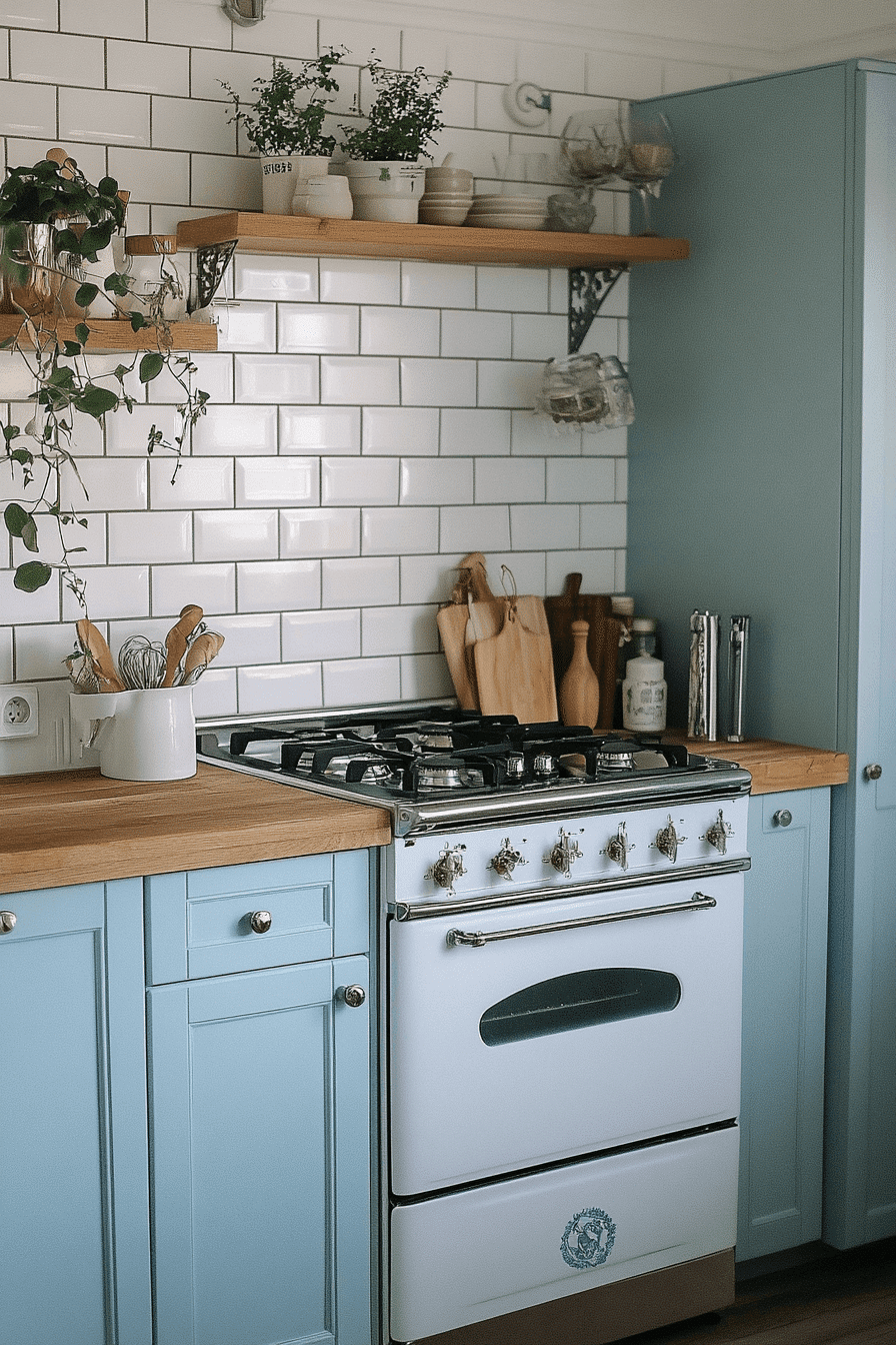 Delicate pastel color introduces charm to a tiny cottage kitchen styled in powder blue. This hue feels gentle and light while adding personality. Paired with white or oak, it stays balanced. Powder blue keeps the space feeling fresh. The result is calm and inviting.