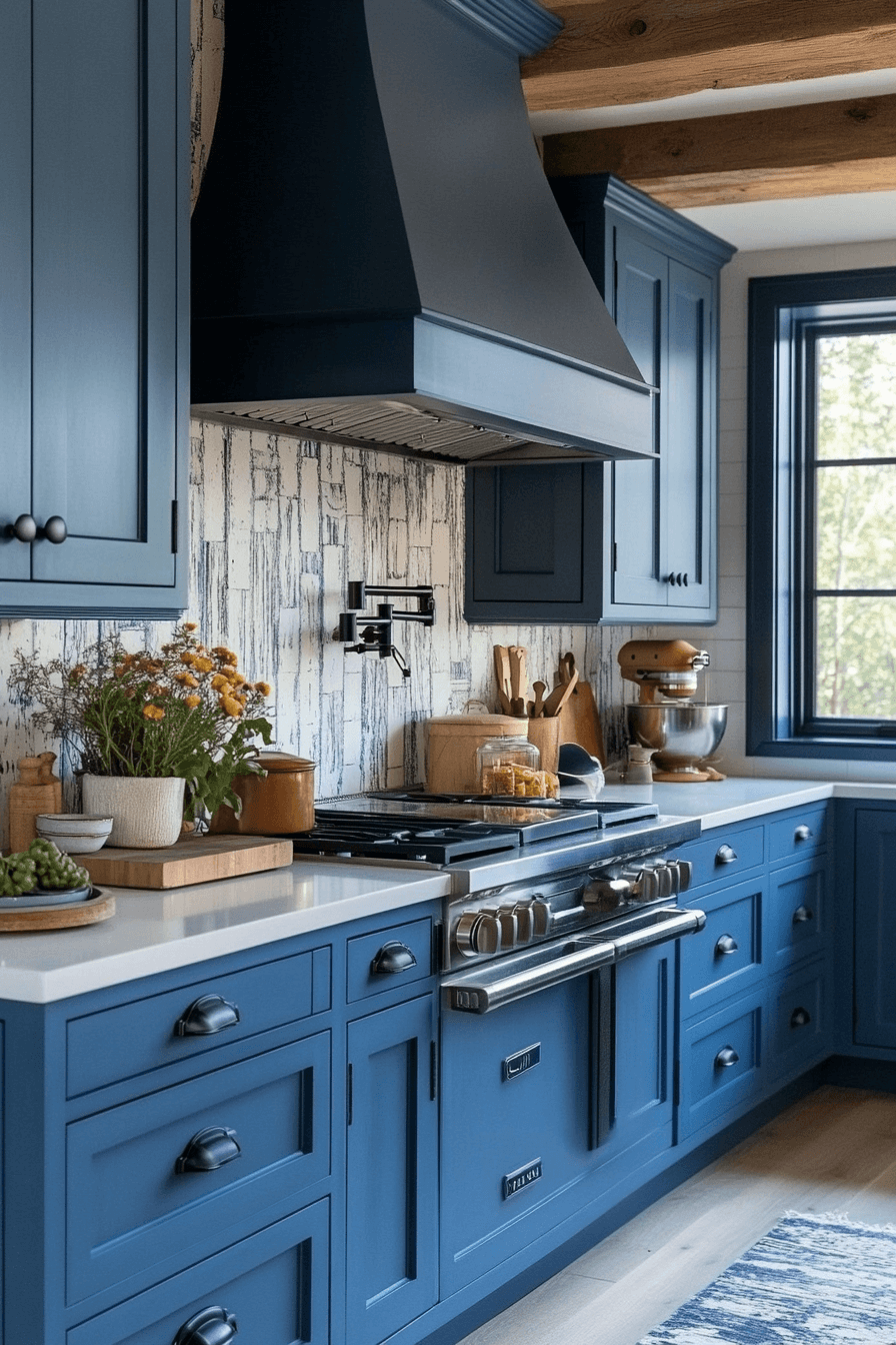 Soft blue-gray shades create elegance in a tiny cottage kitchen styled with slate tones. Blue slate feels calming and refined without dominating the room. It pairs well with brushed metals and pale counters. The color adds richness without clutter. The result is timeless and polished.