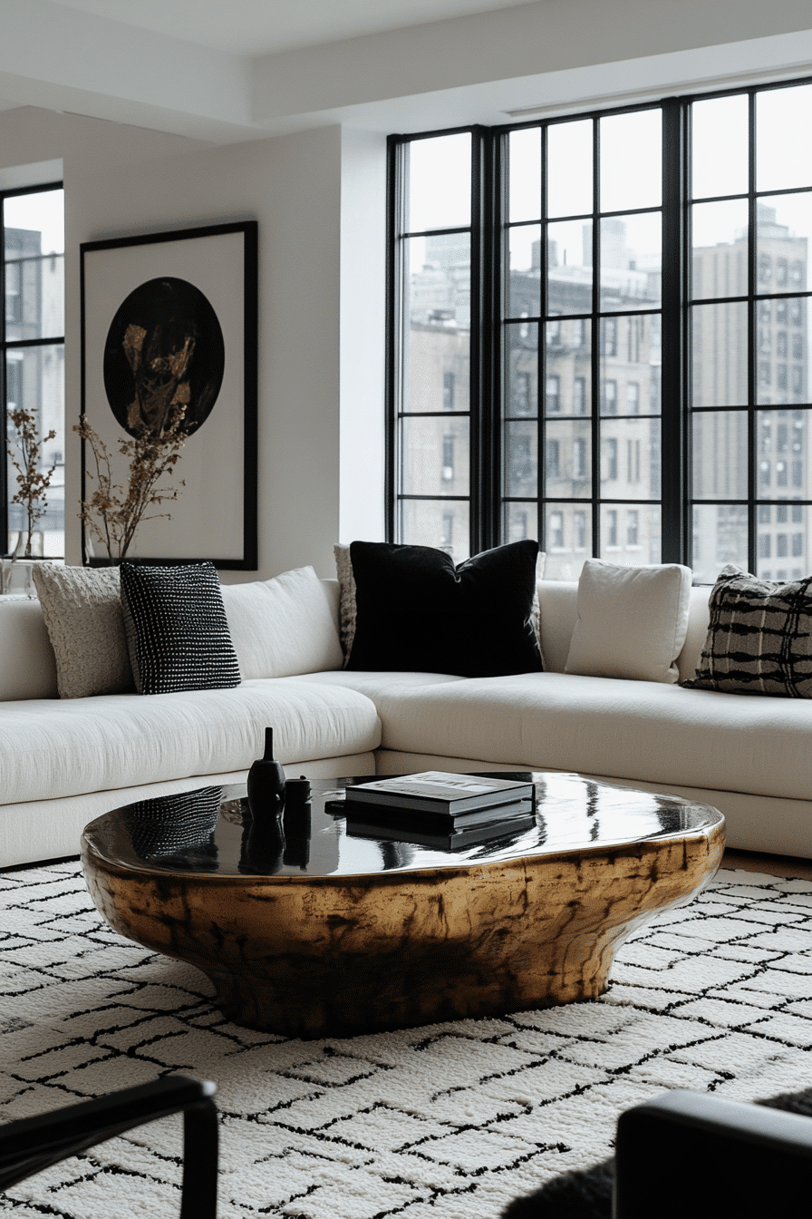 Bold contrast defines a vibey apartment that feels modern and visually striking. Black and white palettes create strong impact. Metallic accents enhance the sleek design. Geometric decor adds structure and interest. Minimal layouts keep everything cohesive. Create a vibey apartment with sharp modern contrast.